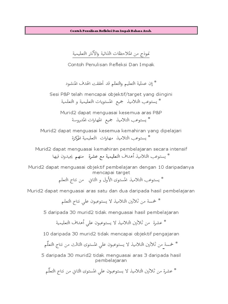 Contoh Penulisan Refleksi Dan Impak Bahasa Arab Pdf